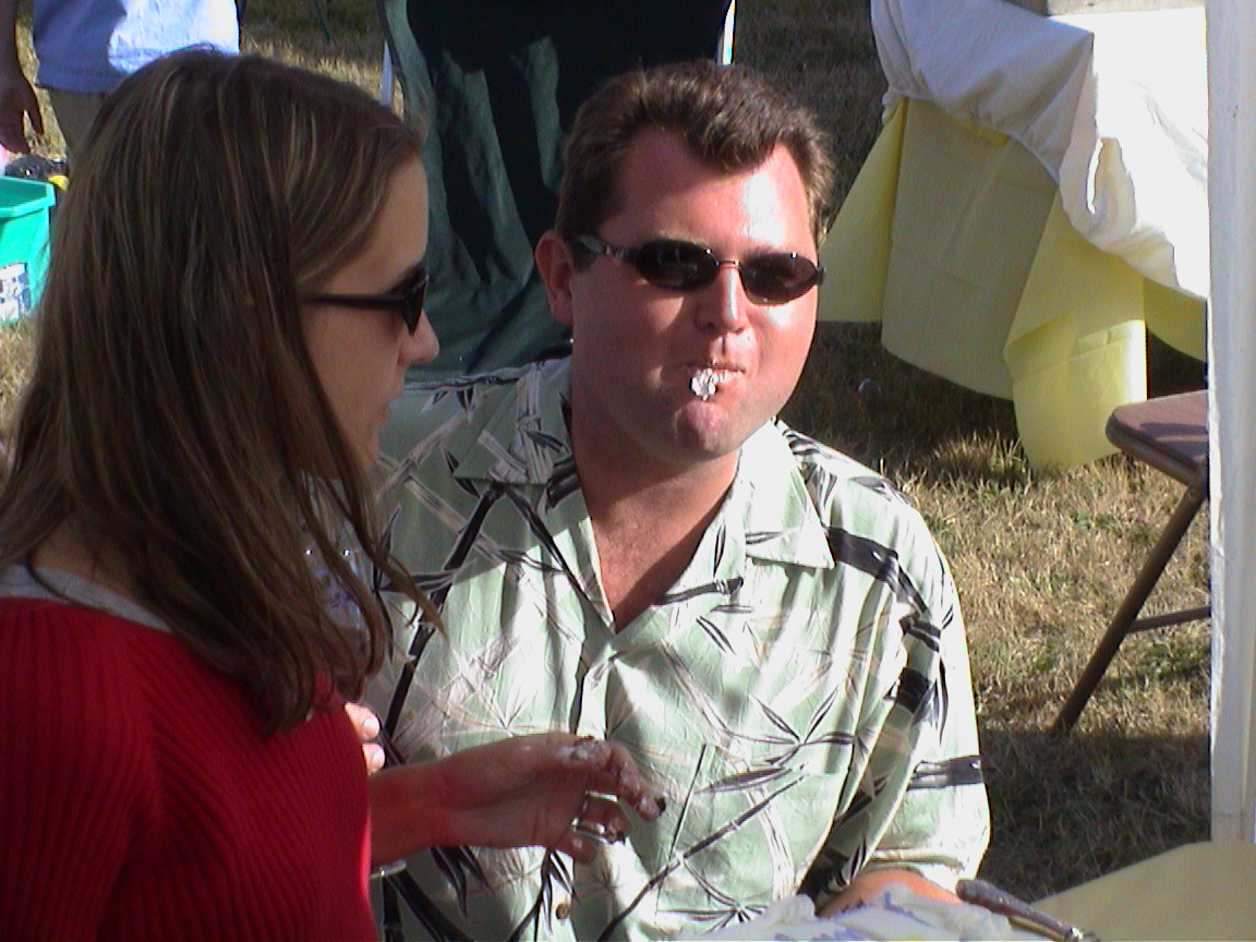 Caption: Jeff eating his cake he was fed.