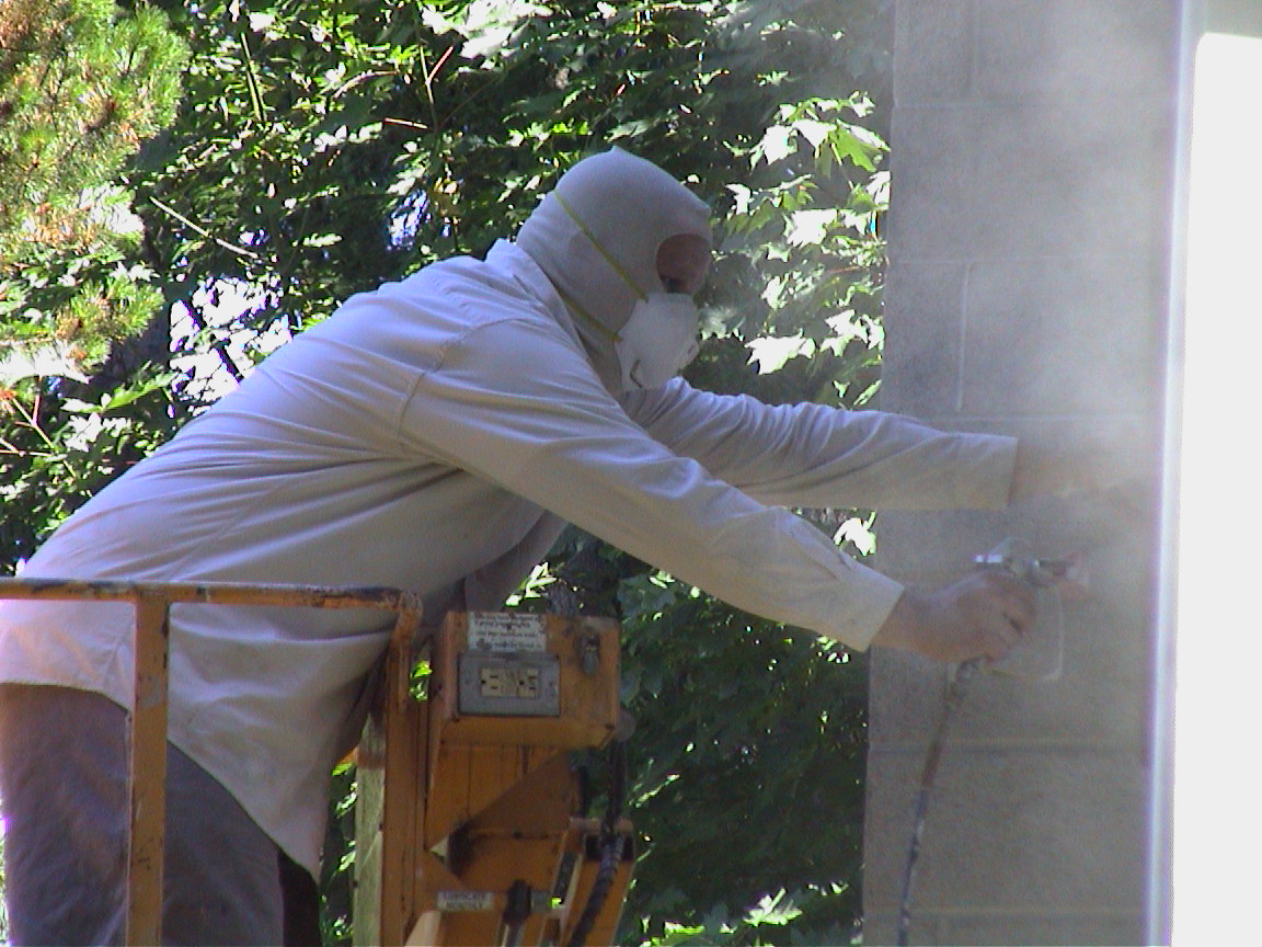 Caption: Thom painting the side of the house.