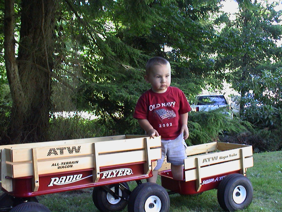 Caption: Logan in his wagon!