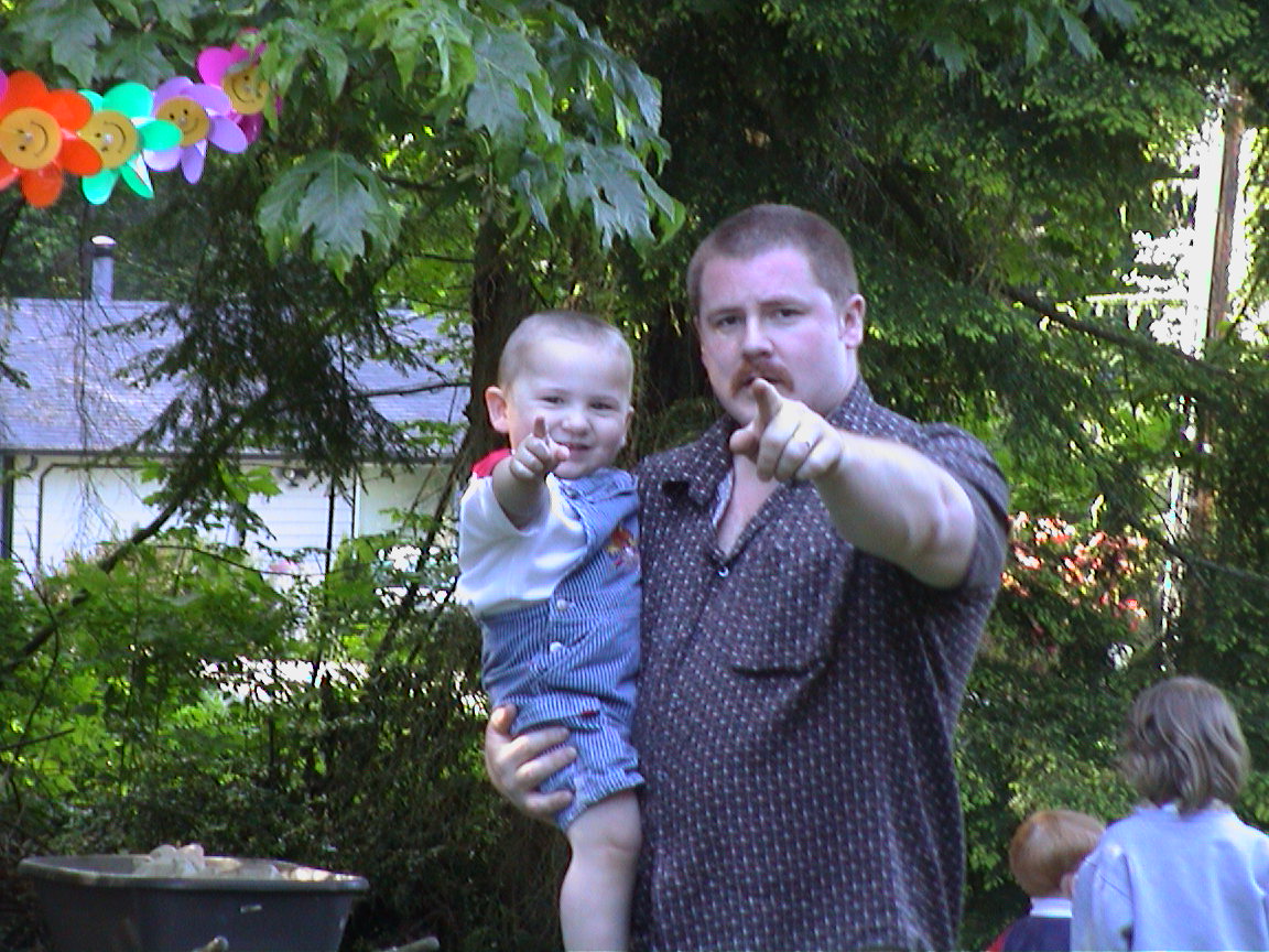 Caption: Uncle Mark & Logan pointing at mommy.