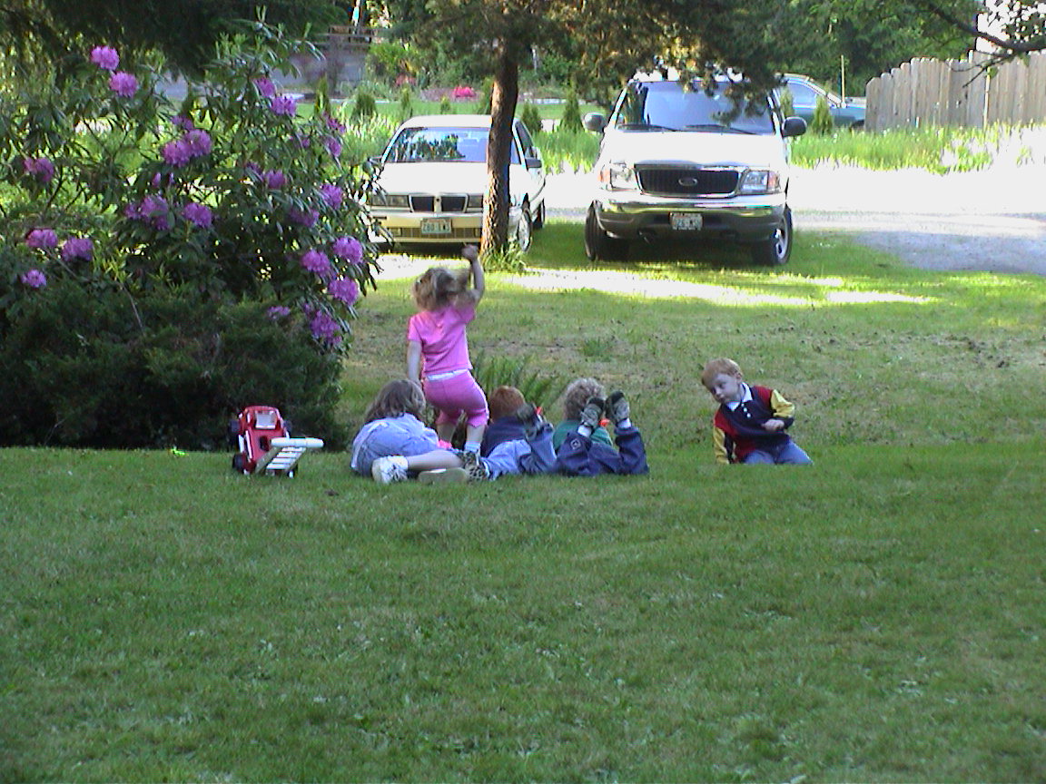 Caption: Kids in the grass at our BBQ