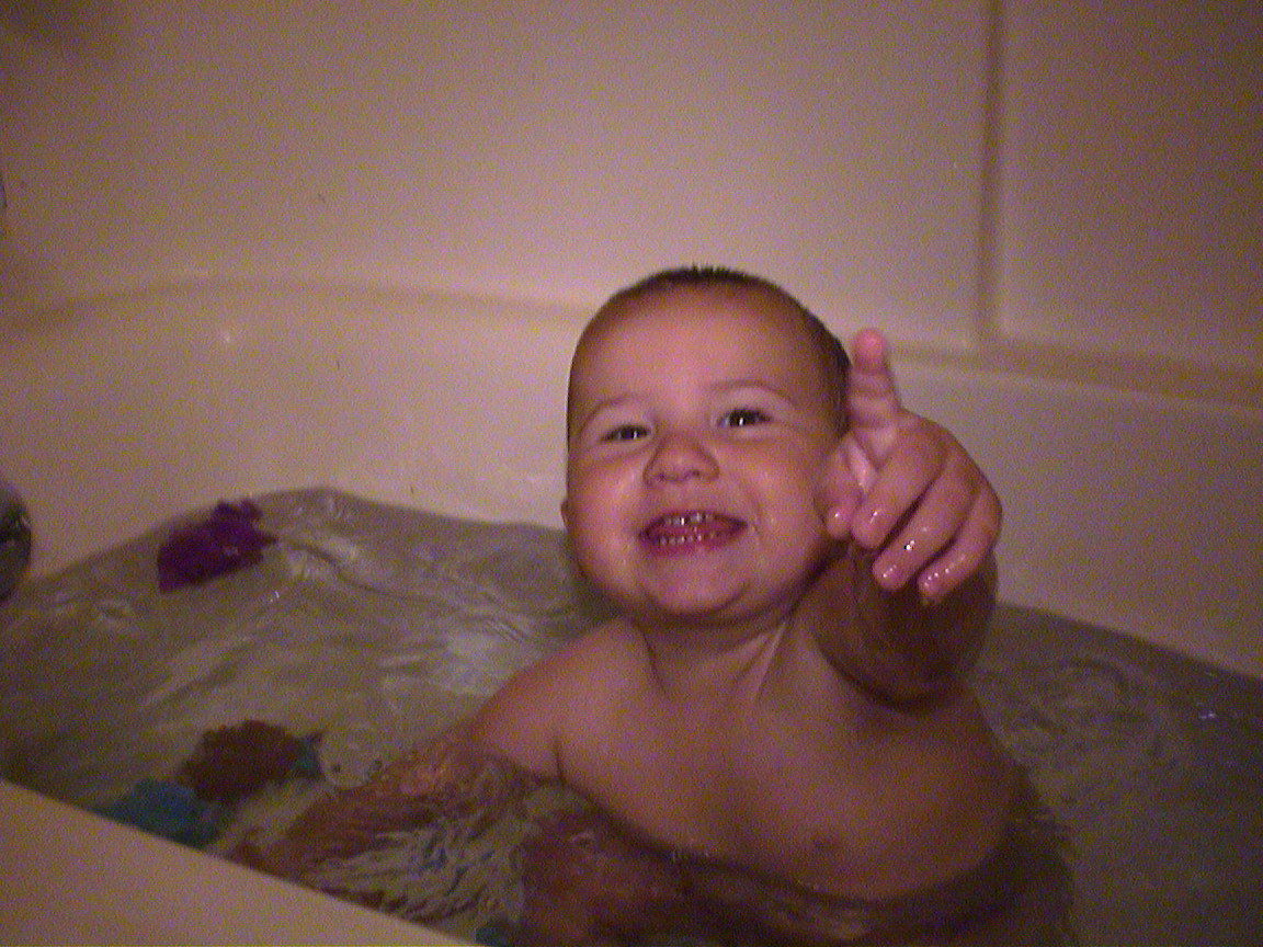 Caption: Bath photo. Usually one of Logan's favorite times of the day.