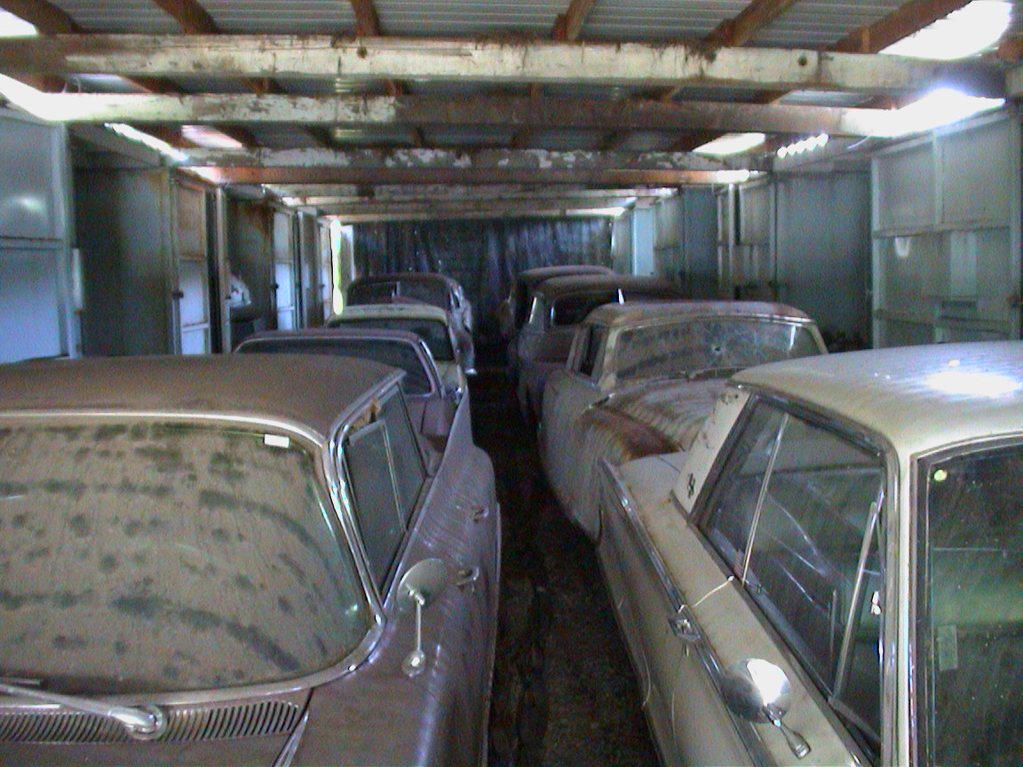 Caption: Cars in trailers at the property where part of the Harold LeMay collection is held.