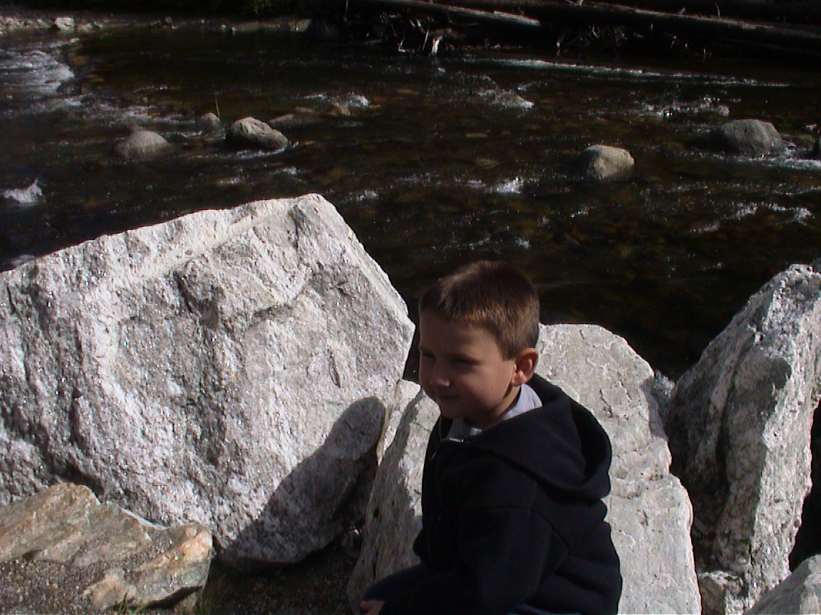 Caption: Logan on a rock next to the Wenatchee River