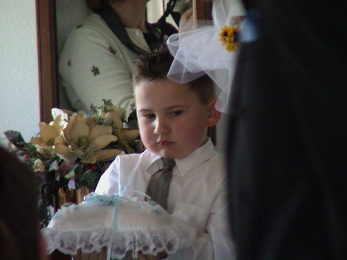 Caption: Logan as ringbearer for Jen & Jacobs wedding.